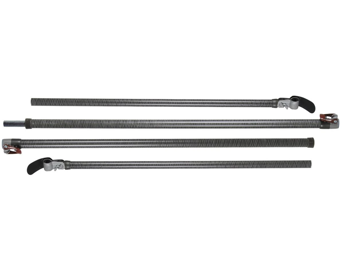 CarbonX verandastang van Isabella. Aan weerskanten voorzien van een klem zodat deze tussen twee staanders gespannen kan worden. Traploos verstelbaar tot 300cm dankzij de IsaFix buisklem.